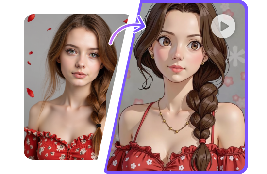 透過Vidnoz專屬吉卜力動畫製作AI技術,將靜態圖片變成吉卜力動畫線上看的動態影片。
